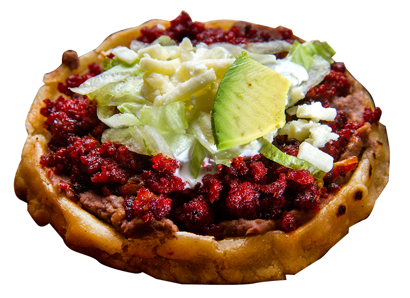 The chorizo sope is a traditional Mexican snack featuring a thick corn masa base, fried with raised edges. The base is topped with spicy, well-seasoned Mexican chorizo, cooked to perfection. It’s typically garnished with beans, lettuce, sour cream, cheese, onion, and salsa, creating a delicious combination of intense flavors and varied textures.